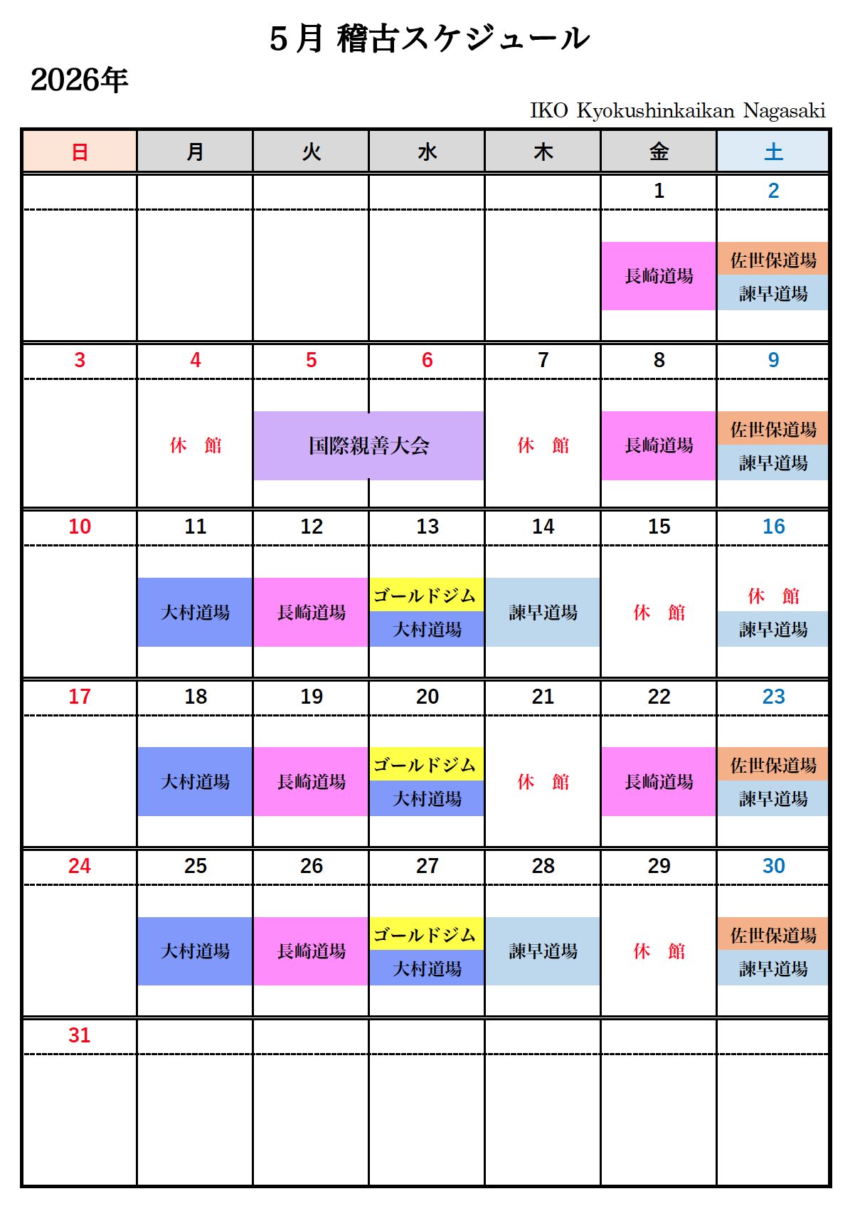 5月 稽古スケジュール